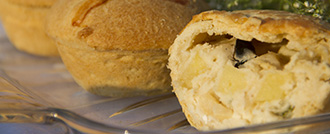 Com 12cm de diâmetro, a tarte de frango tem facilitado muitas refeições. O seu recheio é generoso e suculento, contrastando perfeitamente com a textura da massa tenra.