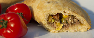 De massa tenra e com um temperado recheio de carne picada e legumes, o pastel pode ser servido às refeições ou como um snack a meio da tarde.