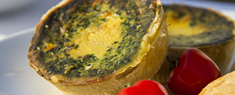 É uma ótima opção para uma refeição vegetariana para a sua montra. A mini-quiche é de tamanho individual - cerca de 11cm de diametro e muito sabor.